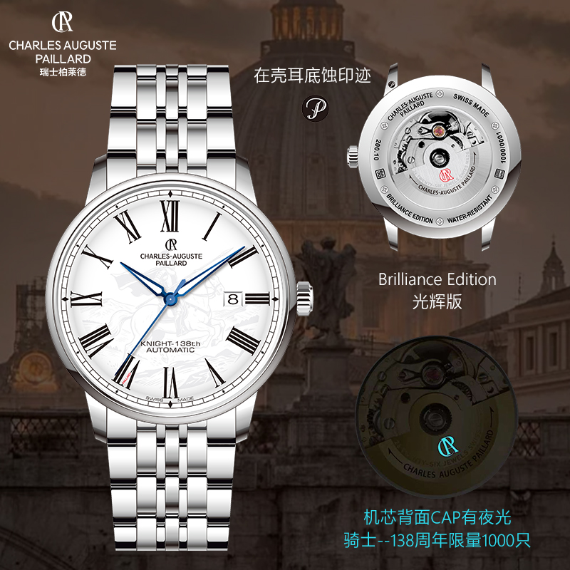 功能瑞士原装进口机芯,自动上链机械机芯,每小时振动28,800次,提供约38小时动力储存
