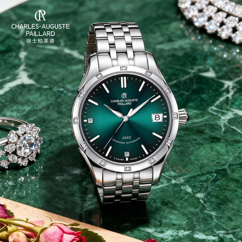 表扣条钉时标,6和9点位钻石刻度