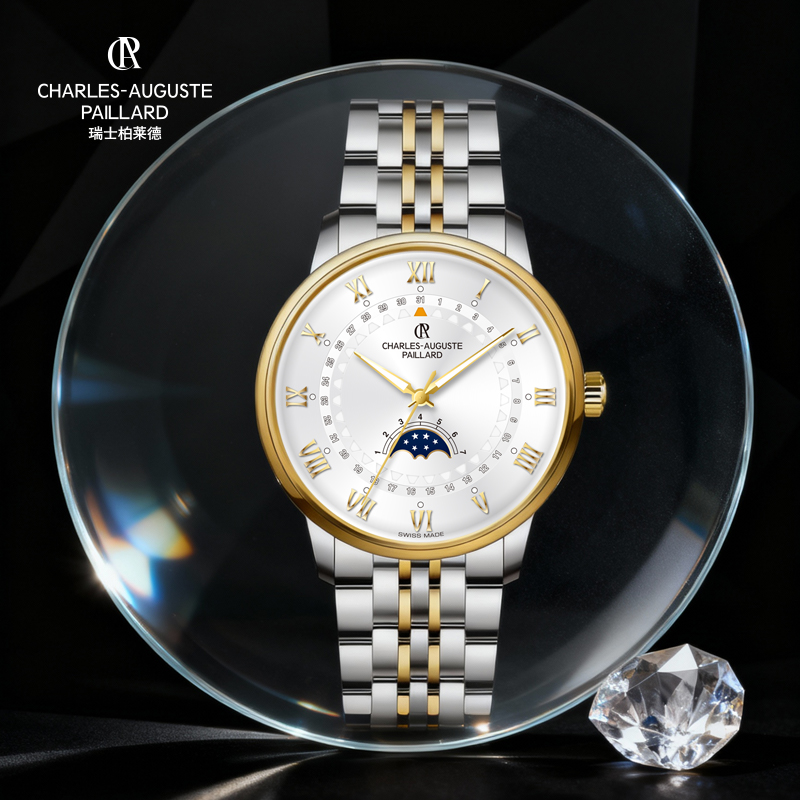 功能瑞士原装进口机芯,自动上链机械机芯,每小时振动28,800次,提供约38小时动力储存