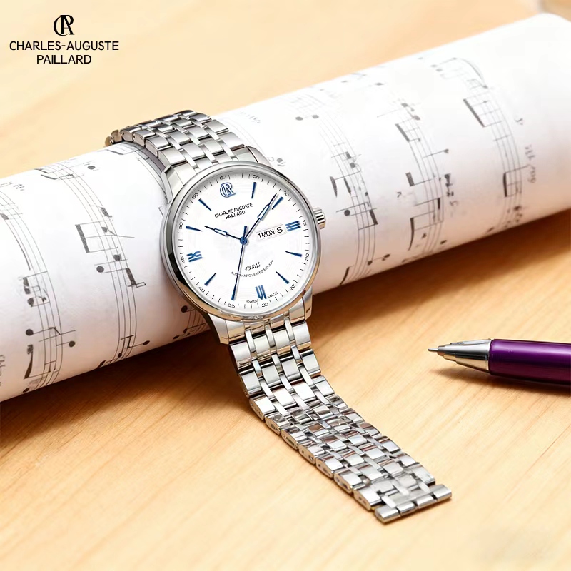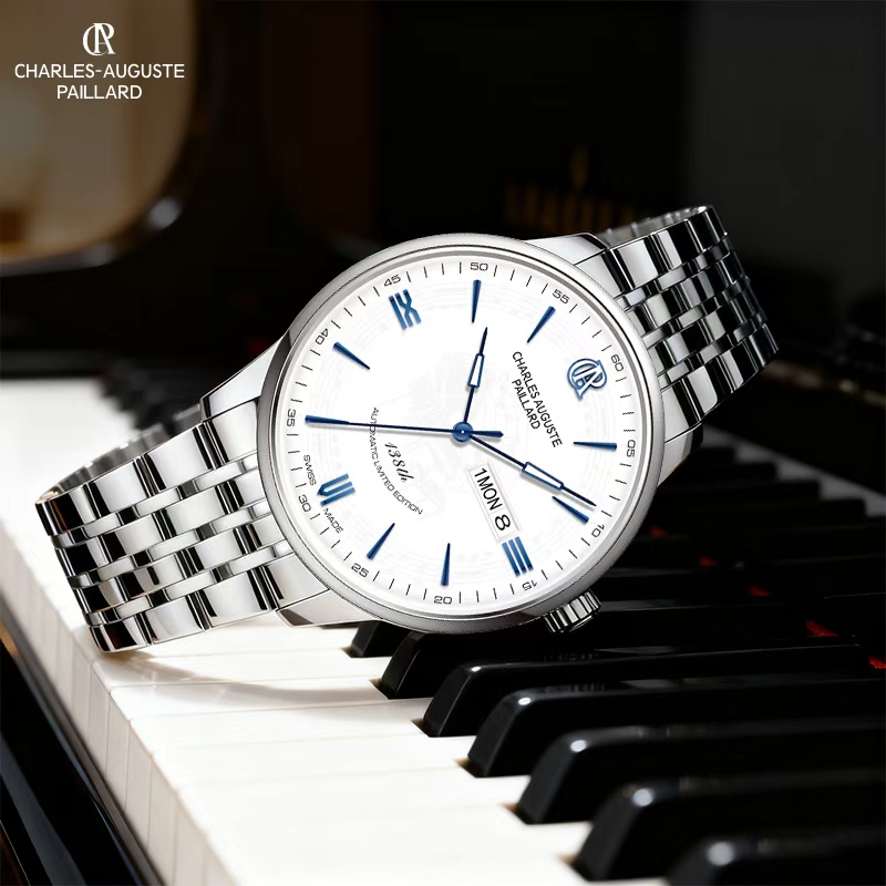 • 瑞士原装进口机芯,自动上链机械机芯,每小时振动28,800次,提供约38小时动力储存